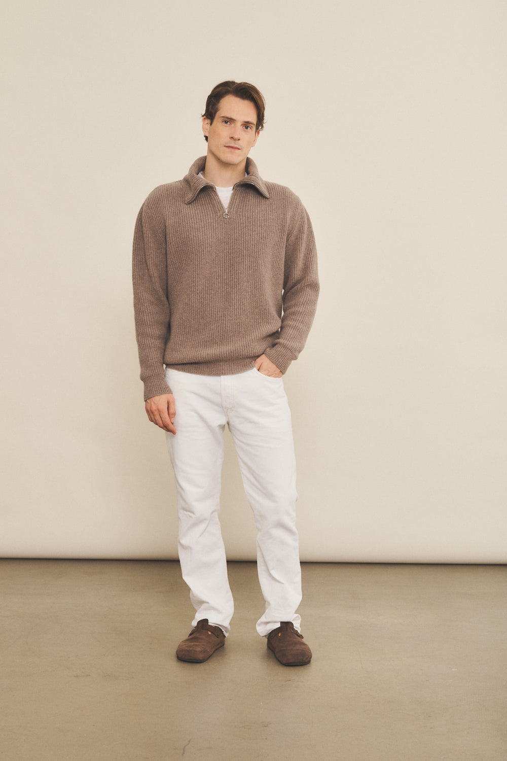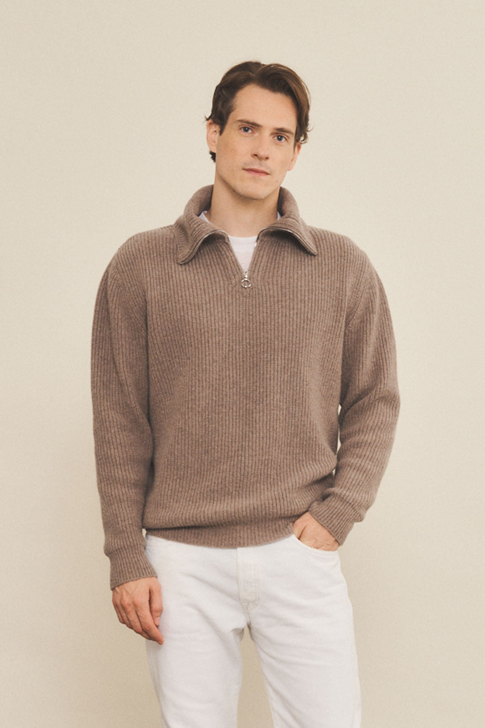 Stockholm is a cashmere knit obtained by spinning a rather thick yarn. It is called "classic" because it is the most common type, the essential cashmere knit !