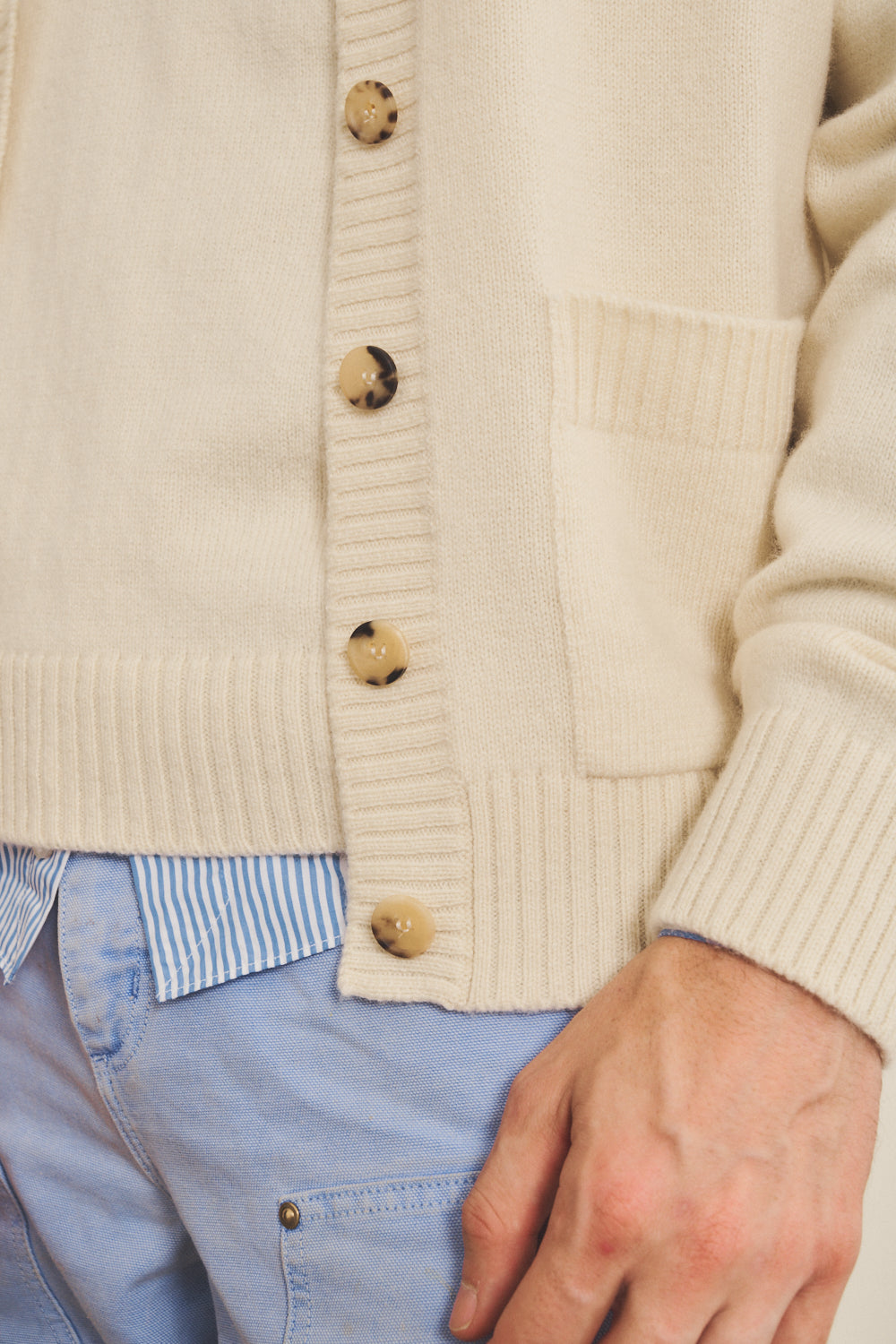 - Ribbed finishes : collar, cuffs, button placket and waist