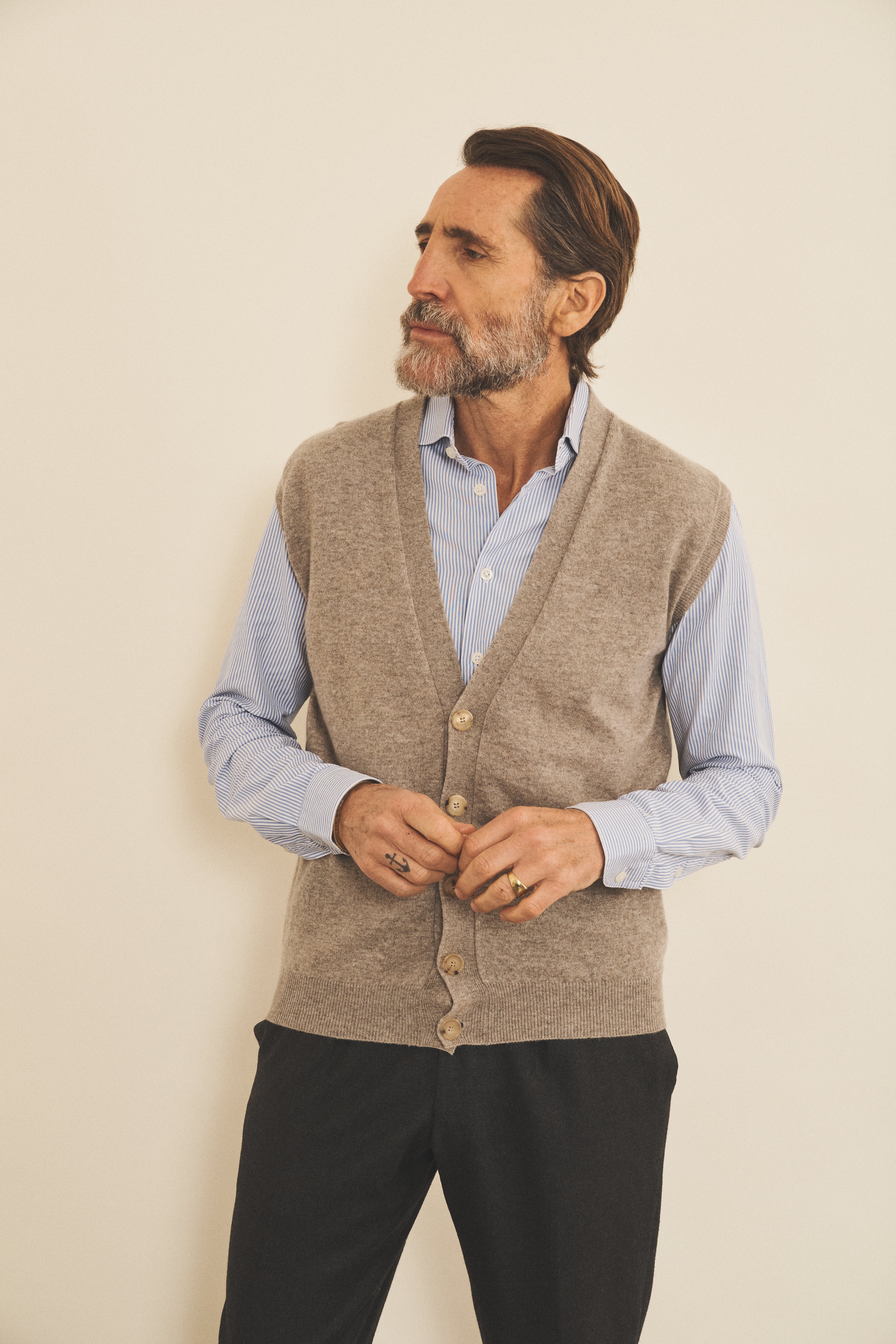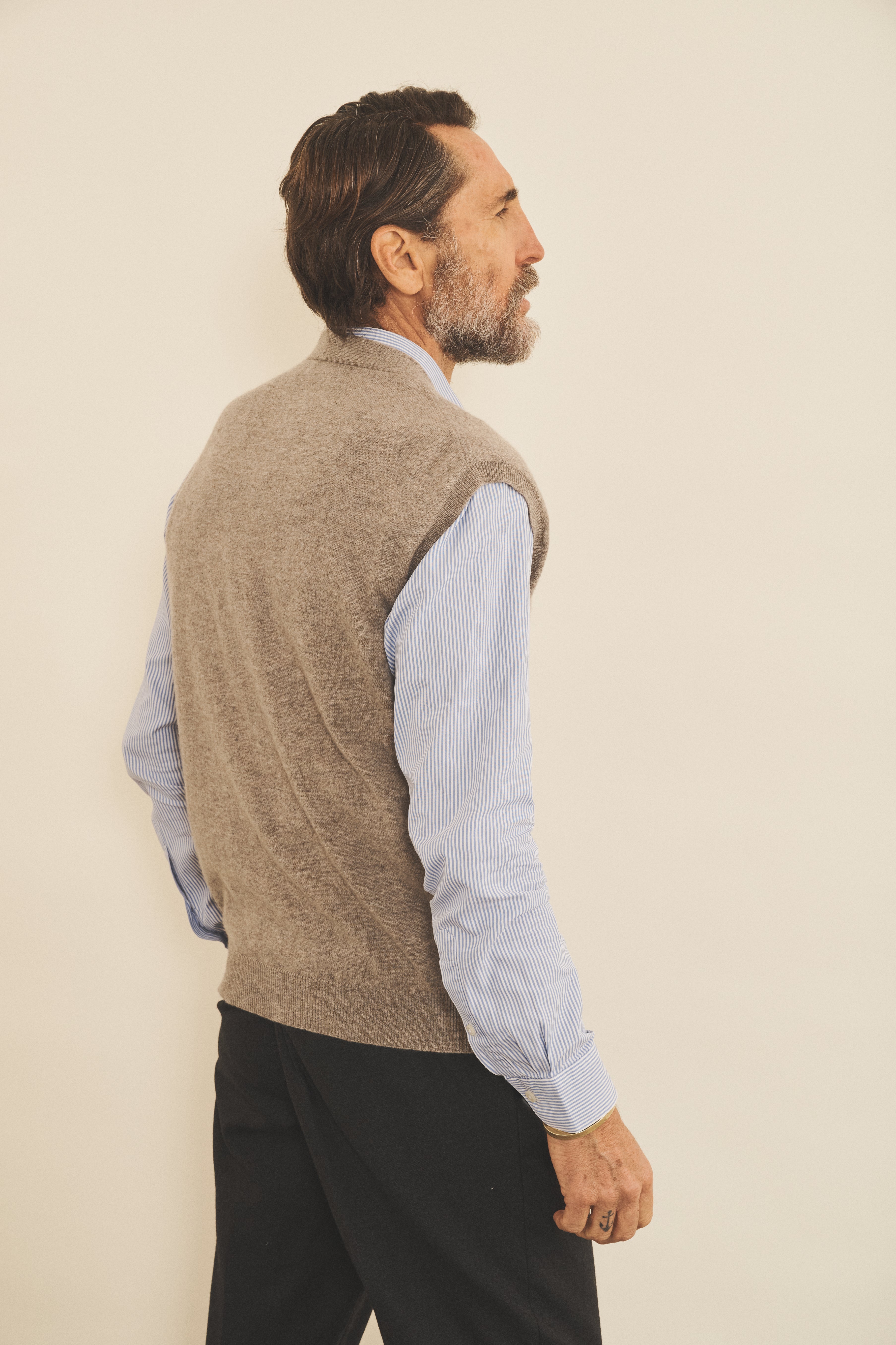Découvrez Jacob, notre cardigan unisexe sans manches à col en V, fabriqué en 100% cachemire avec notre qualité Malmo, pour une élégance intemporelle et un confort absolu.