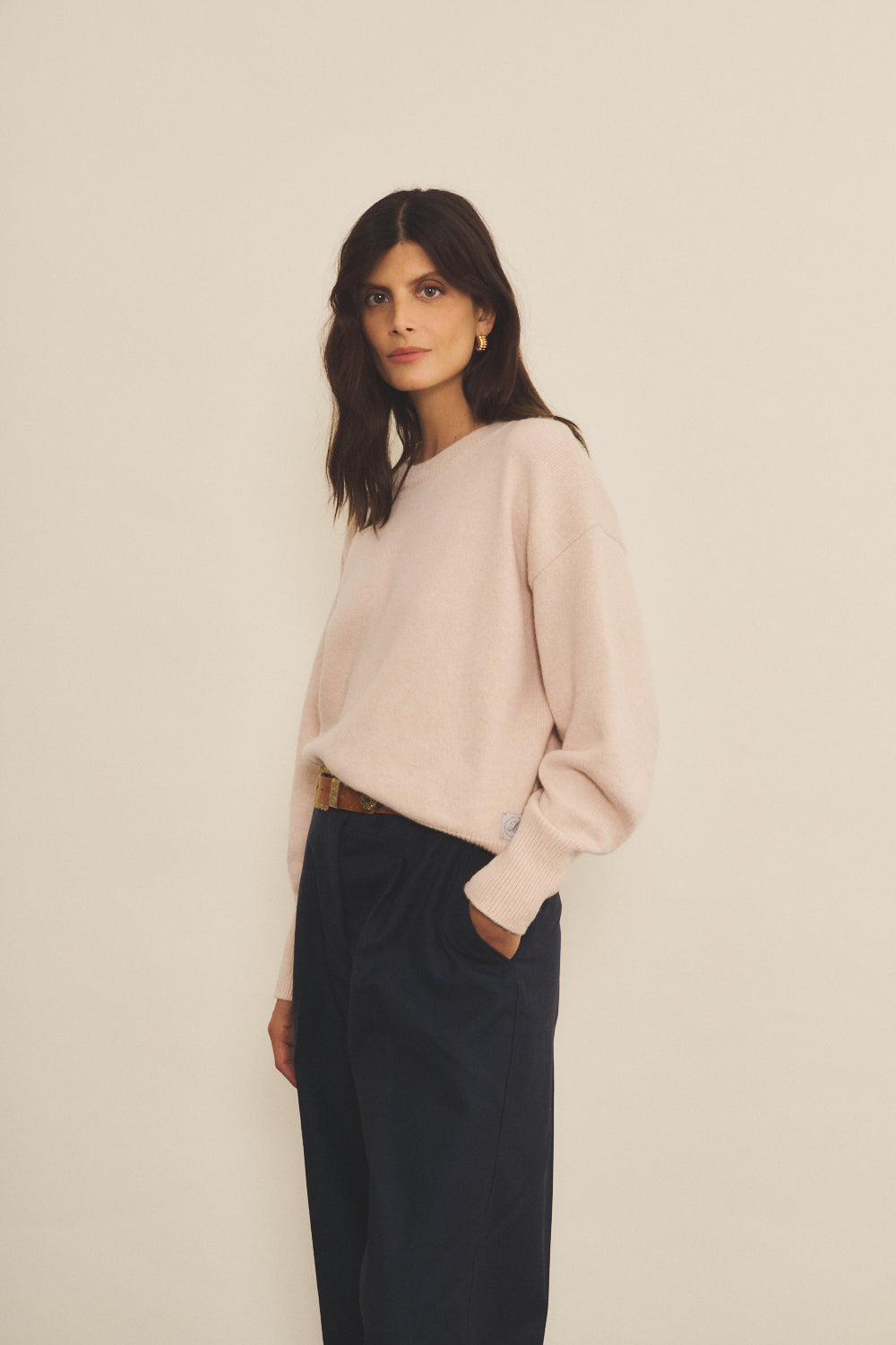 Cashmere sweater women soft pink color - focus view | Sarah | Linnea Lund